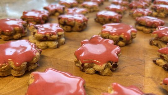 Pink glänzen die Doppelkekse: Plätzchen gehen auch in vegan. Eva Hornauer