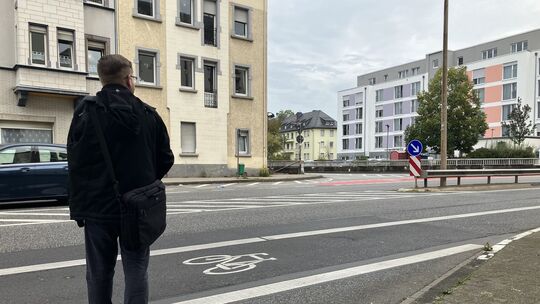 Fußgänger überqueren viel befahrene Straße in Koblenz: Ampel soll mehr Sicherheit bringen