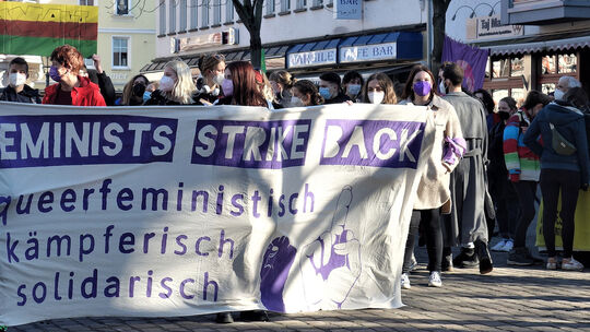 Auf dem Münzplatz informierten und demonstrierten anlässlich des Weltfrauentages verschiedene Gruppen. Foto: Lieselotte Sauer-Kaulbach Lieselotte Sauer-Kaulbach