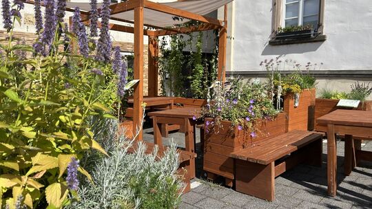 Auf dem Kirchplatz gibt es seit April die grüne Entdeckerlounge, die den Platz aufwertet. Annika Wilhelm