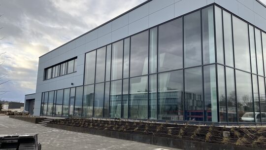 Mit Blick auf die Fassade sieht das neue Hallenbad 2023 schon sehr fertig aus. Doris Schneider/Archiv