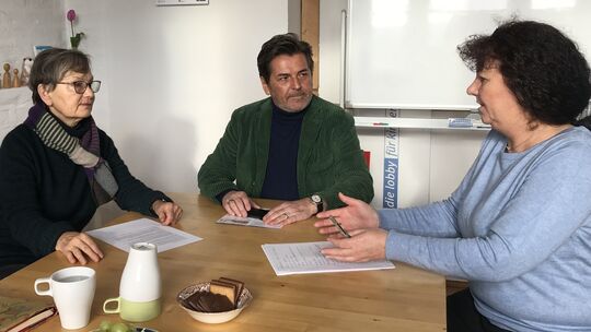 Geschäftsführerin Anke Jorzig (von rechts), Schirmherr Thomas Anders und Vorstandsmitglied Rosi Graefen werben für die Mitarbeit im Kinderschutzbund. Foto: Doris Schneider Doris Schneider