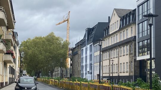 Einen Tag lang war die Kreuzung Südallee/Roonstraße in der Koblenzer Vorstadt gesperrt, ein riesiger Kran wurde aufgestellt. Mit dem Ausbau der Südallee zur Fahrradstraße hat er aber nichts zu tun.