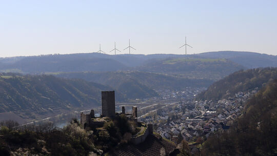 Blick auf die Niederburg und den möglichen Windpark Niederfell. Die Visualisierung gehört zu einer ganzen Reihe von Perspektiven, die für das Genehmigungsverfahren nach dem Bundes-Immissionsschutzgesetz erarbeitet wurden.