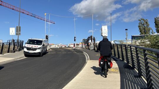 Das Umfeld der neuen Koblenzer Rheinbrücke ist in Teilen schon fertig – und Radfahrer kommen nun wieder prima auf der Pfaffendorfer Seite hoch und runter. Eines ist aber mit der neuen Regelung weniger bequem.