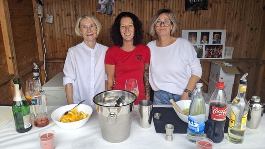 Bei einem Fest im Sommer darf er heutzutage nirgendwo fehlen: Bei diesen drei Damen bekommt man Aperol Spritz. Alexander Thieme-Garmann