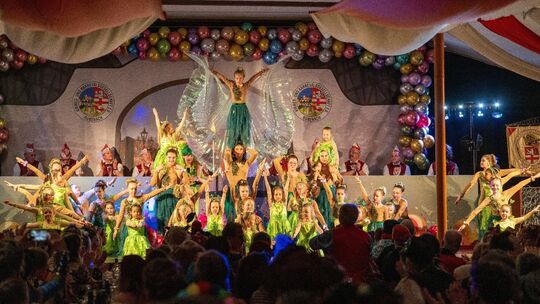 Kleine Feen, Männerballett und Besuch von Tollitätenpaar: So ging es bei der Prunksitzung in Rübenach zu. Dazu reitet der Elferrat sogar auf Steckenpferden ein.
