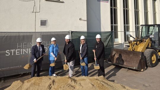 Der symbolische Spatenstich ist vollbracht (von links): MdB Thorsten Rudolph, Förderkreisvorsitzende Sandy Renner, Bürgermeister Christoph Mohr, Astrid Conrad-Hommer (Bauamt) und Architekt Thomas Steinhardt. Alexander Thieme-Garmann