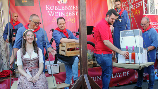 Eine Tradition ist das Aufwiegen der Weinkönigin. Erwin Siebenborn