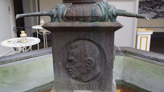 Ein Relief am Schängelbrunnen zeigt die Büste von Josef Cornelius, dem Verfasser des Schängellieds. Alexander Thieme-Garmann