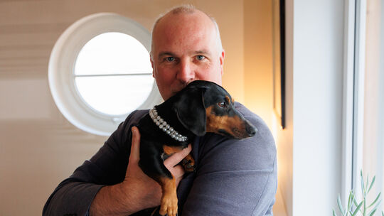 Die Dackeldame mit dem Perlenhalsband: Mario Specht hat Wilma adoptiert. Vor einigen Jahren machte sie deutschlandweit Schlagzeilen, weil ihre Vorbesitzerin sie in eine Dönerbude in Koblenz geworfen hat. Kevin Ruehle
