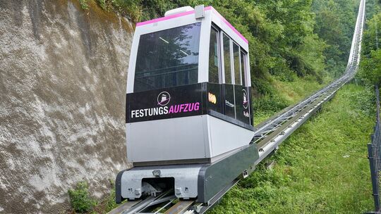 Vor Kurzem war der Festungsaufzug für ein paar Tage außer Betrieb. Denn die Seile mussten ausgetauscht werden, berichtet Tina Rudolph, eine der Pressesprecherinnen der Koveb, zu der der Schrägaufzug gehört. 2000 Meter neue Stahlseile sind eingezogen worden, heißt es auf Nachfrage unserer Zeitung, die Koveb investiere in umfangreiche Sicherheitsmaßnahmen.
