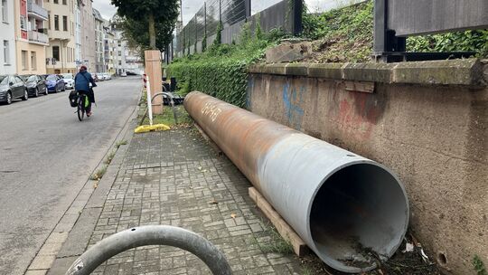 Ein Stückchen Lärmschutzwand an der Bahnstrecke in der Koblenzer Vorstadt, eine Lücke. Ein Stückchen, eine Lücke. Wieso geht es hier bei den Bauarbeiten nicht richtig voran?