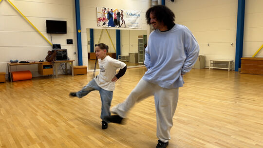 Die Musik setzt ein. Ein Hip-Hop-Beat dringt aus den Lautsprechern, hinein in eine Halle mit hellen Wänden, Holzboden, hohen Spiegeln. Nur leise ist die Melodie zu hören – und schon kann er nicht mehr ruhig stehen. Er fühlt den Rhythmus, nur ganz kurz.
