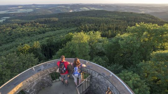 Start ist in Bad Breisig am Rheinufer, Ziel ist der Kaiser-Wilhelm-Turm auf dem höchsten Berg der Eifel, der Hohen Acht (Foto). Diese beiden Punkte verbinden den rund 53 Kilometer langen Wanderweg Eifelleiter, der jetzt zu Deutschlands schönstem Wanderweg werden soll. -