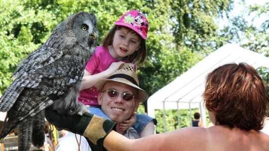 Beim Walderlebnistag im Kempenicher Steinrausch kamen die Kinder, wie hier die vierjährige Sally, den Greifvögeln ganz nahe.