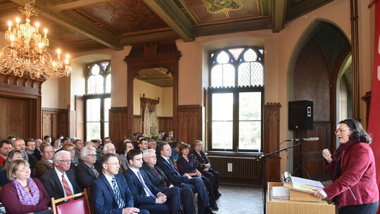 Immer gut für deutliche Worte: Bundesarbeitsministerin Andrea Nahles sprach beim Neujahrsempfang der Kreis-SPD im Sinziger Schloss Klartext. Auch hier war zu spüren: Kanzlerkandidat Martin Schulz gibt der Basis Aufwind.