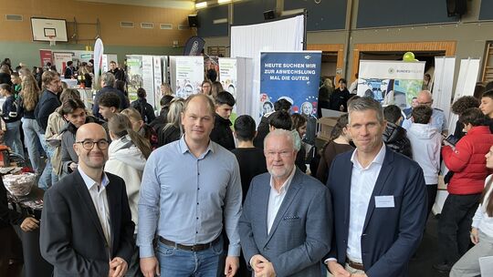 Freuten sich über den großen Zulauf bei der Berufsorientierungsmesse an der Realschule Calvarienberg (von links): Tino Hackenbruch (Wirtschaftsförderer bei der Kreisverwaltung Ahrweiler), Christian Zimbelmann (Leiter der Realschule Calvarienberg), Hans-Jürgen Juchem (Beigeordneter der Stadt Bad Neuenahr-Ahrweiler) sowie Marco Bastiaansen (Leiter der Erich-Kästner-Schule). Johannes Kirsch