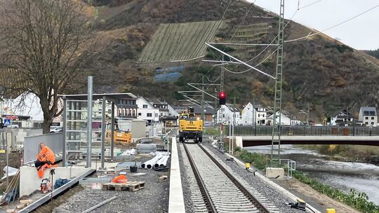 Wie hier am Bahnhof in Dernau gleicht der obere Teil der Ahrtalstrecke vielerorts noch einer Baustelle. Ab dem 14. Dezember sollen hier wieder regelmäßig Züge verkehren. Johannes Kirsch