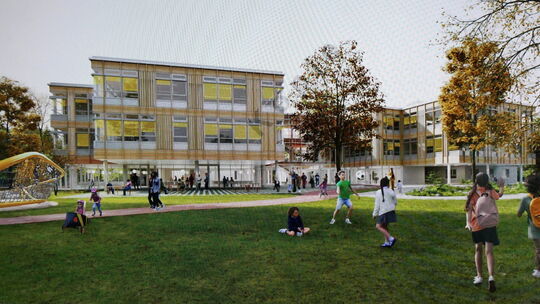 So soll sie aussehen, die neue Grundschule in Bad Neuenahr. Zwei miteinander verbundene Baukörper werden im Süden des Schulgeländes neu entstehen. Jochen Tarrach. Architekturbüro Behnisch Architekten Weimar