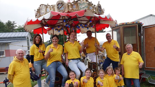 Kurze Pause für einige Helfer um den Vorsitzenden Hans-Peter Moog (rechts). Thomas Weber