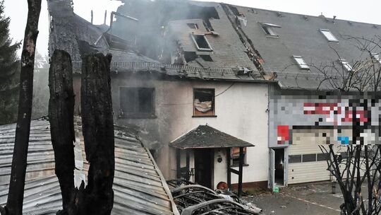 Bei dem Brand eines Wohnhauses mit angrenzendem Betriebsgelände in der Burgstraße Nürburg konnte die Feuerwehr letztlich einen Gebäudeteil davor retten, dass die Flammen überschlugen.