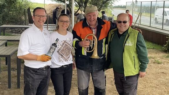Dort trifft er auf Alexander und Gabi Zimmermann, die Inhaber des Helfer-Hotels Kalenborner Höhe, und den Trompeter vom Ahrtal, Franz Josef Graf, aber ebenso auf Menschen wie Dirk Neetling, Ingenieur aus Essen, der jede Woche mit „Wäller Helfen“ im Ahrtal ganz praktisch anpackt, um die Not zu lindern.