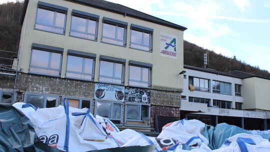 Die Realschule plus in Altenburg ist bei der Hochwasserkatastrophe schwer beschädigt worden. Vor dem Wiederaufbau muss zudem die Asbestsanierung erfolgen. Die Gebäude werden, wie das nebenan entstehende Lehrschwimmbad, später ihre Wärmenergie aus dem kalten Dorfwärmenetz beziehen. Frank Bugge