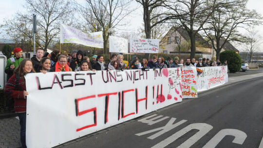 Bad Neuenahr - 50 junge Menschen haben am Mittwochmorgen vor dem Jugendgästehaus in der Kreisstadt bei der Tagung der Landesjugendpfleger für ihr Anliegen gekämpft: dass der Kreis Ahrweiler zwei auslaufende Jugendsozialarbeitsprojekte des Sinziger Hauses der offenen Tür (HoT) finanziell unterstützt.