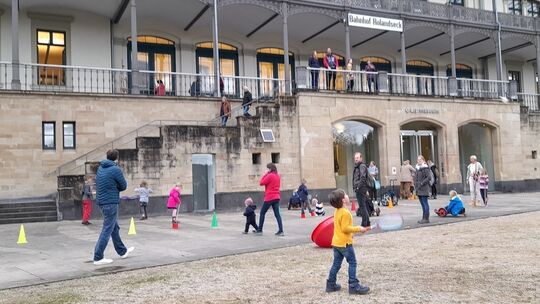 Zwischen den Lesungen und anderen Angeboten tummelten sich Familien auf dem aufgebauten Sportfeld vor dem Museum. Foto: Judith Schumacher Judith Schumacher