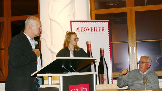 Der Gesprächskreis Ahrwein bot eine fachlich versierte Diskussion – hier zwischen Professor Manfred Stoll (links), Caroline Groß vom Ahrwein e.V. (Mitte) sowie Weinbauexperte Paul Gieler. Jochen Tarrach