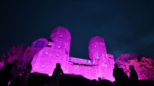Lichtspiel für gleiche Rechte: Remagener Friedensmuseum pink angeleuchtet