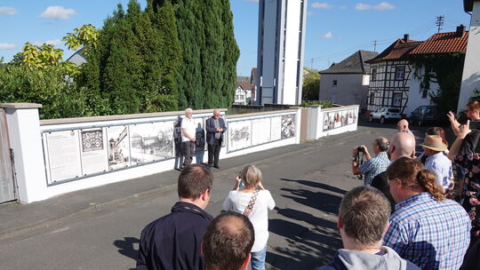 Auf 16 Bildtafeln können Betrachter an einer Mauer entlang der Graf-Blankart-Straße in Lantershofen jetzt viel über die Geschichte des Ortes erfahren. Es geht um alte Gebäude, die längst abgerissen sind, aber auch um Wappen oder Wirtschaftswerke.