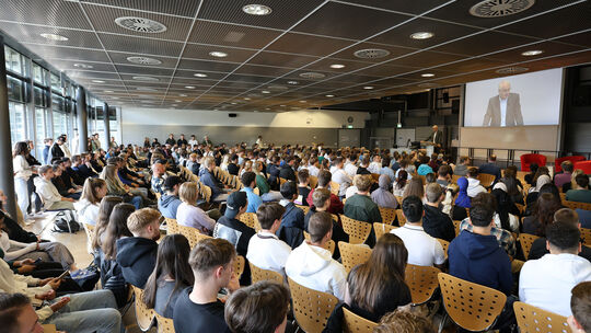 Am Campus Remagen wurden die fast 500 Erstsemester der beiden Fachbereiche „Mathematik und Technik“ sowie „Wirtschafts- und Sozialwissenschaften“ in einer gemeinsamen Erstsemesterveranstaltung im Audimax begrüßt, unter anderem von Prof. Dr. Karl Stoffel, dem Präsidenten der Hochschule Koblenz. Er rief die neuen Studierenden dazu auf, sich auch über die Lehrveranstaltungen hinaus in das Campusleben einzubringen und es so mitzugestalten. Die studentischen Gremien stellten sich vor und ehemalige Studierende berichteten von ihrem Studium und ihrem weiteren Werdegang.