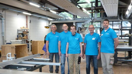 In der Schreinerei wird ordentlich gewerkelt. Die Mitarbeiter Stefan Schmickler (von links), Ralph Esten, Noel Jonas, Guido Pohl und Timo Diederichs sorgen dafür. Judith Schumacher