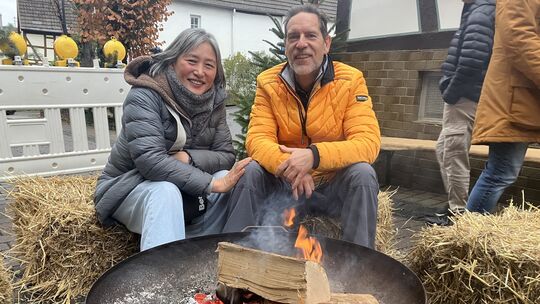 Beliebter Treffpunkt bei ungemütlichem Wetter waren beim Oberbreisiger Nikolausmarkt die Feuerschalen der Weinbaubrüder. Martin Ingenhoven