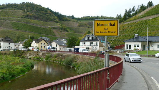 Am 1. Januar ist es so weit: Der Ort Marienthal gehört in seiner Gesamtheit zu Dernau und somit zur Verbandsgemeinde Altenahr. Bis dahin gibt es das Kuriosum, dass sich der Ort mit seinen 81 Einwohnern (Stand 30. Juni 2022) je zur Hälfte auf Dernau und die Stadt Bad Neuenahr-Ahrweiler aufteilt. Die Stadtgrenze geht mitten durch den Ort.