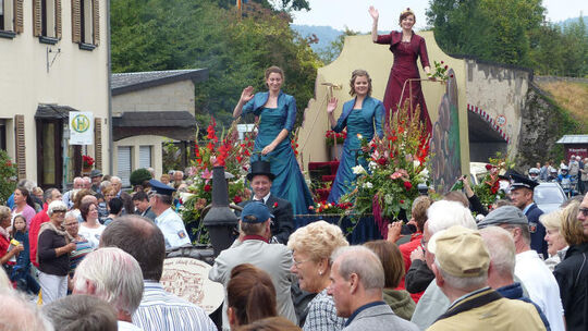 Jessica Ellen Großgarten, die am Vorabend zum zweiten Mal als Weinkönigin von Rech proklamiert worden war, grüßte mit ihren Prinzessinnen vom Festwagen in die Menge. Vollrath
