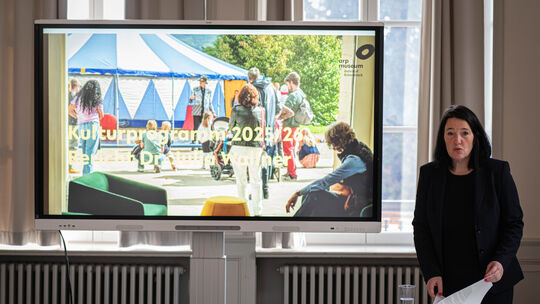 Julia Wallner, Direktorin des Arp-Museums Bahnhof Rolandseck, bei der Vorstellung des Programms für 2026. Thomas Kölsch