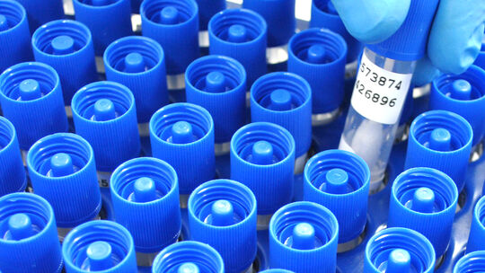 Speichelproben, die in einem Labor untersucht werden. Djifroudi, Andrea