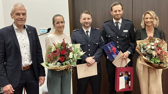 Gratulationen begleiteten den Wehrleiterwechsel (von links): Bürgermeister Fred Jüngerich, Jasmin Wollny, André Wollny, Björn Stürz und Jessica Stürz. Elmar Hering