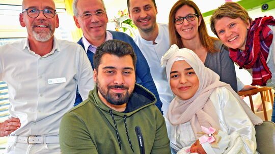 Viele Gratulanten beglückwünschen im DRK-Klinikum die frischgebackenen Eltern: Azra heißt das 1000. Baby im Krankenhaus Kirchen