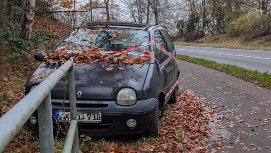 Über mehrere Wochen war ein mit Polizeiband umwickelter Twingo auf der Kreisstraße zwischen Wehbach und Wingendorf dauerhaft abgestellt. Daniel-D. Pirker