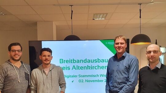 Zum dreiköpfigen Orga-Team des Digital-Stammtischs Westerwald/Sieg gehören (von links) Marc Nilius, Jonathan Schulte und Markus Bläser. Referent beim jüngsten Treffen war Lars Kober (2. von rechts). Foto: privat