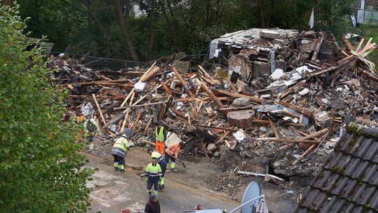 Durch eine Explosion wurde am 25. September ein Wohn- und Geschäftshaus in Daaden völlig zerstört. Ein 15-jähriger Junge, der sich zur Zeit des Unglücks in dem Gebäude aufhielt, wurde dabei schwer verletzt. Thomas Frey/dpa