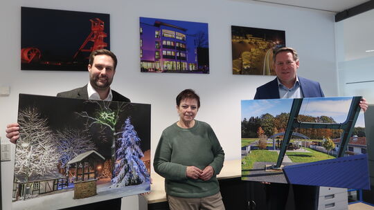 Stadtbürgermeister Johannes Behner (links) und Bürgermeister Joachim Brenner nehmen gerne die Fotografien von Regina Brühl für das Betzdorfer Rathaus entgegen. Foto: Claudia Geimer Geimer Claudia. Claudia Geimer