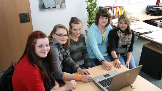 Statt nach Schulschluss nach Hause zu fahren, verbringen (von links) Sonja Lenz, Lea Thran, Amy Vollmer, Salome Blum und Aileen Rosenberg ihre Freizeit lieber im Computerraum der IGS Horhausen, um dort Senioren Computerkenntnisse beizubringen. Foto: Kathrin Stricker