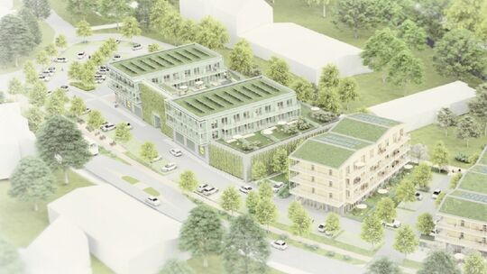 Neben Wohnbebauung mit Discounter im Erdgeschoss der Gebäudeteile 1 und 2 berücksichtigt er im Erdgeschoss der Gebäude 3 und 4 Möglichkeiten für Dienstleistungsbetriebe und Gastronomie. Demnach rechnet man mit etwa 50 modernen, barrierefreien und hochwertigen Wohneinheiten. Zwischen den Gebäudekörpern sind Frei- und Grünflächen vorgesehen. „Fotovoltaikanlagen, Fassaden- und Dachbegrünung sowie Dachgärten zeigen, dass Procom mit seinem Nutzungskonzept mit der Zeit geht und Wert auf eine klimaangepasste und qualitätsvolle Umsetzung legt“, heißt es im Pressetext.