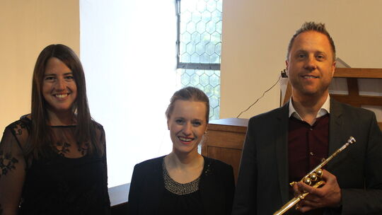 Die drei Musiker (v. l.) Lea Marie Lenart (Orgel), Anna Herbst (Sopran) undPeter Protschka (Trompete) beeindruckten bei ihrem Konzert in der Friesenhagener Barockkirche. Foto: Carolin Raab crb