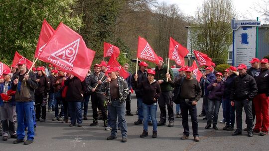 Daaden. Rund 60 Mitarbeiter der Firma Baumgarten in Daaden haben gestern Nachmittag mit einer Protestaktion vor dem Werkstor ihrer Forderung nach einem Tarifvertrag Nachdruck verliehen. Ab mittags hatte der Betriebsrat eine zweite Betriebsversammlung einberufen – zur ersten, am 13. März, war Medienvertretern der Zugang seitens der Unternehmensleitung verweigert worden. So sei die gestrige Aktion zugleich auch als „Protest für die Presse- und Meinungsfreiheit“ zu verstehen, wie der Erste Bevollmächtigte der IG Metall Betzdorf, Uwe Wallbrecher, betonte.